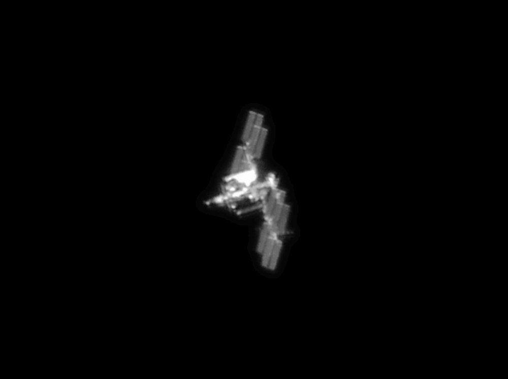 Sie wird dabei oft noch von der Sonne angeleuchtet, während es am Boden schon dunkel ist. Bei solchen Gelegenheiten erscheint die ISS als hell leuchtendes Objekt, das am Himmel von West nach Ost fliegt.