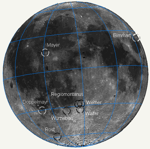 Tabelle der Nürnberger Mondkrater: